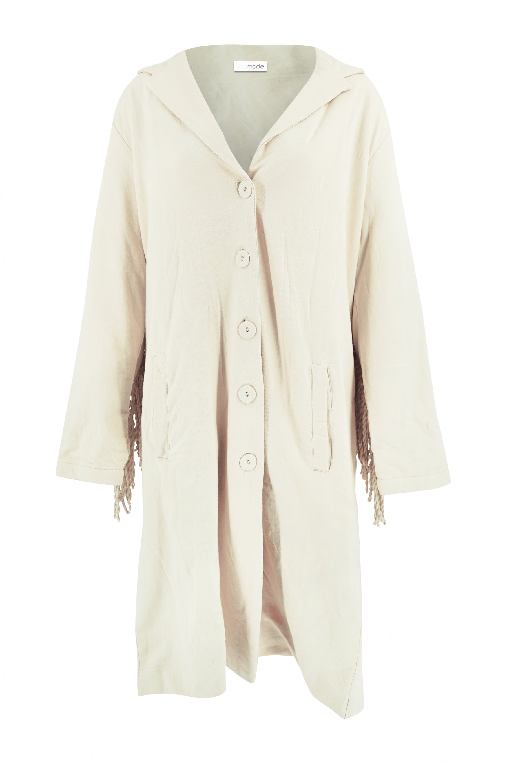 Op zoek naar een item met bohemian flair? Dan is de Long Fringe Jacket Spirit Light Sand Plain van ibzmode jouw match. Lang jacket van geweven stof, is gevoerd, bezet met franjes, heeft een revers kraag en sluit met kno Het natuurlijke materiaal zorgt voor een luchtige feel. Shop nu bij ibizamode en straal deze zomer in stijl.
