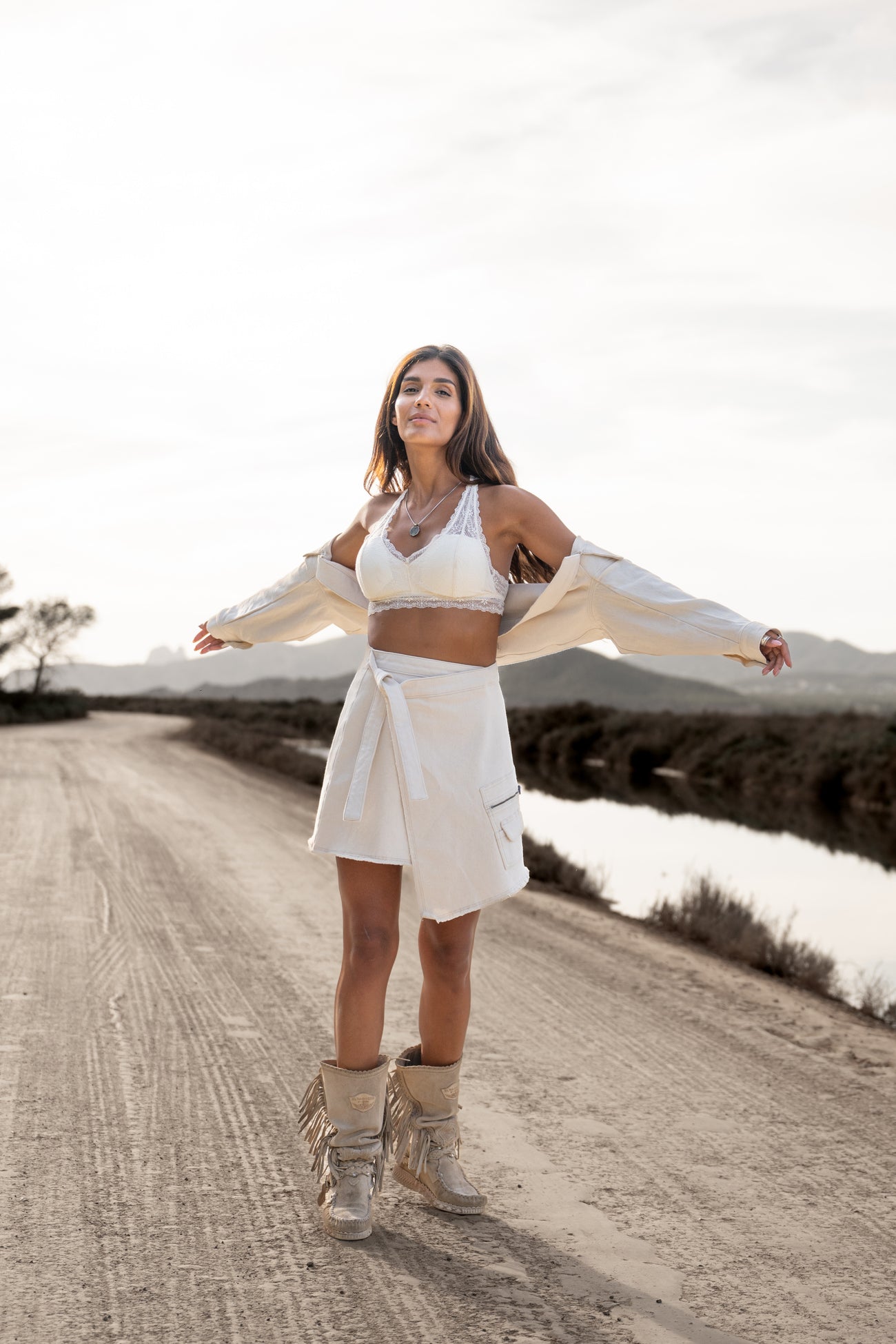 Deze Muse Bolero Jacket van MOOST Wanted in het light beige ademt Ibiza vibes. Heeft een opstaand kraagje, knoopje bij de pols en geborduurd 'MOOST Wanted' logo op de rug Perfect te combineren met slippers, een basic top of een lichte blouse. Voeg deze must-have toe aan je zomergarderobe.